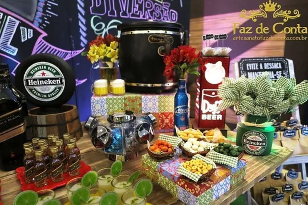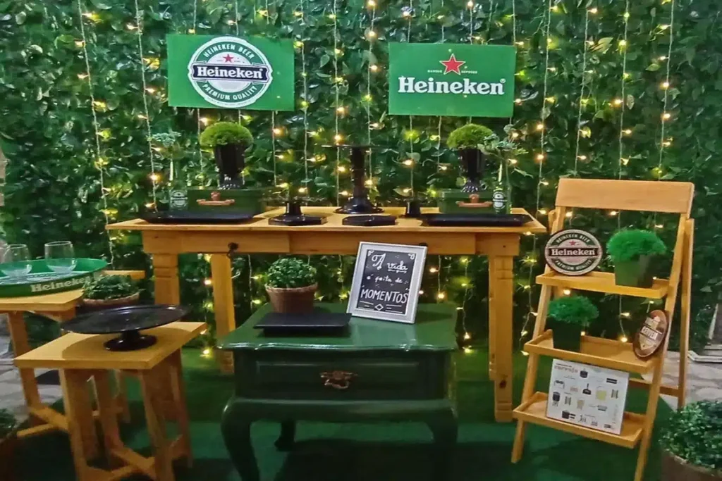 Se você tem um espaço dedicado a um bar em sua casa, pode criar um ambiente com tema Heineken, tornando-o um espaço divertido e acolhedor para entretenimento. Isso pode ser feito através da escolha de móveis e decorações que reflitam a marca, como mesas de bar com o logo da Heineken, pôsteres de campanhas publicitárias da marca e iluminação com as cores verde e branca da Heineken.