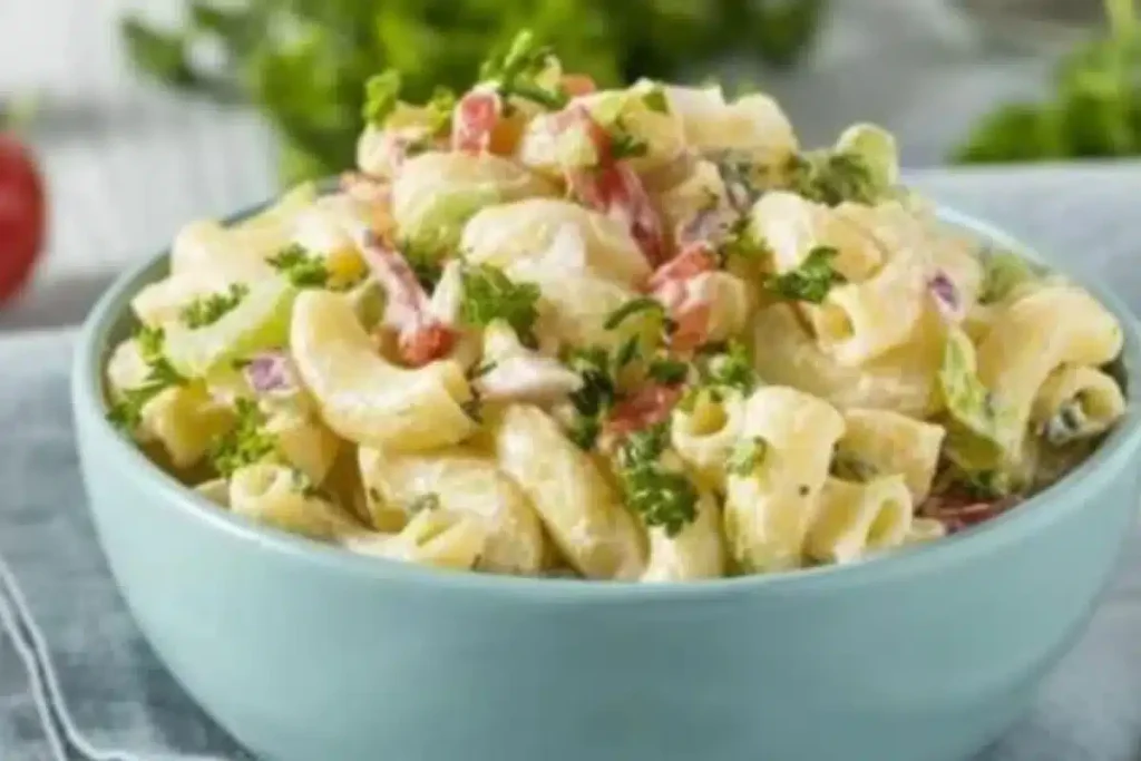 - Adicione o macarrão na tigela e misture novamente, até que todo o macarrão esteja envolvido pela mistura de maionese e os ingredientes adicionais.