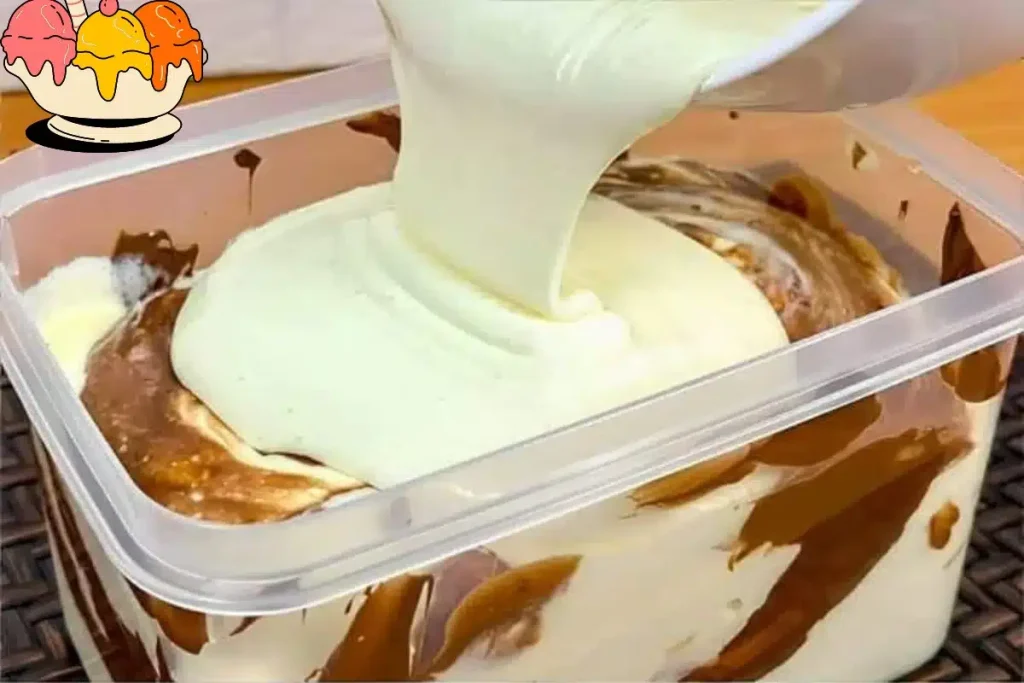 - Misture a Nutella ou o caramelo por toda a volta do pote de sorvete.