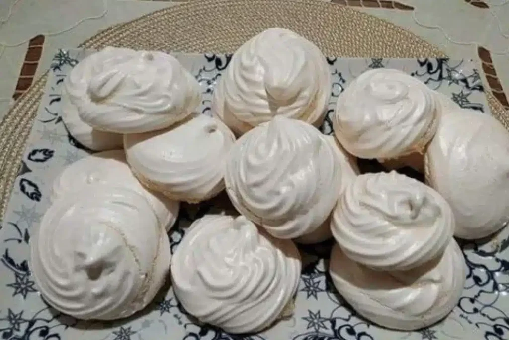 - Modele pequenos montinhos de suspiro na assadeira forrada, puxando levemente na ponta para formar um biquinho.